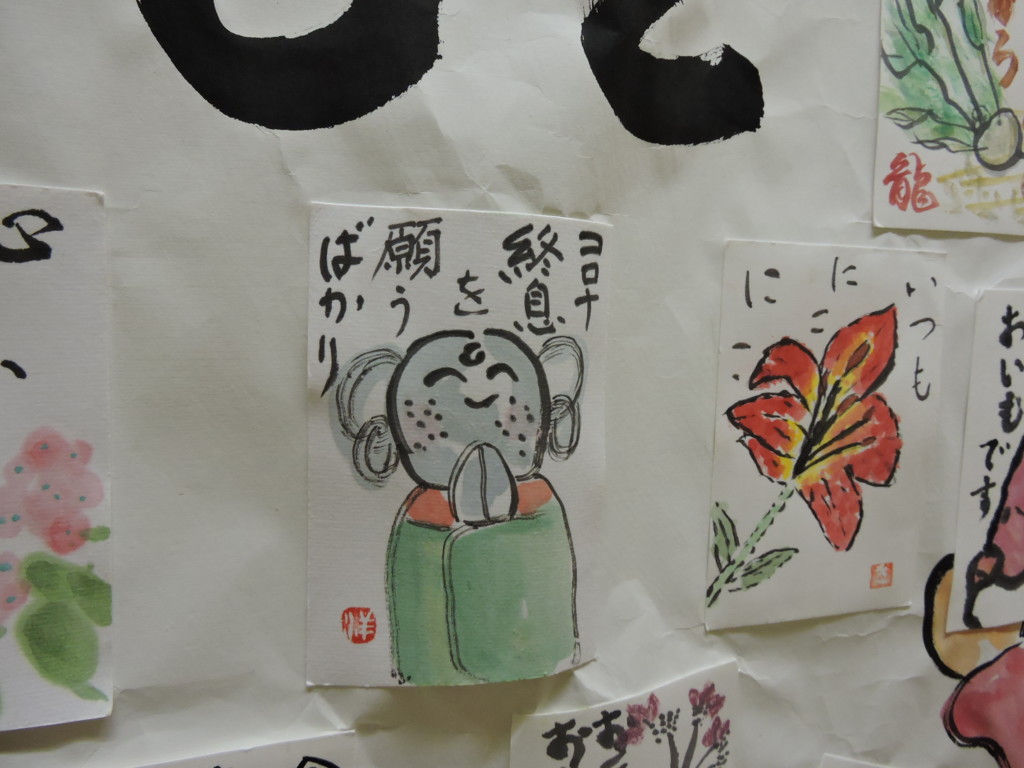 以前は民生委員の皆様の訪問があり、在園の皆様と一緒に「絵手紙作り」が行われていました。