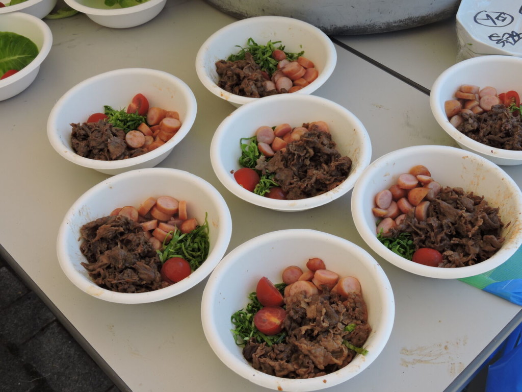 国産和牛75㎏、ウインナー1,100本、ホルモン5㎏が用意されました。