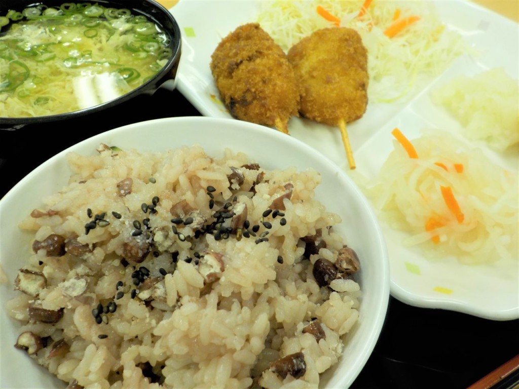未分類 13Sep2019 赤飯でお祝い 敬老のお祝いの献立です。「赤飯」「鯛の塩焼き」「紅白なます」ハレの日の料理が並びました。 飲み込む力が弱くなってこられた方のための「ミキサー食」「ソフト食」です。 職員食堂でもお祝いの赤飯が炊かれました。 在園の皆様が毎年楽しみにされている紅白饅頭です。長生園用に特別サイズで作っていただいております。 未分類 敬老祝賀式 お花クラブより
