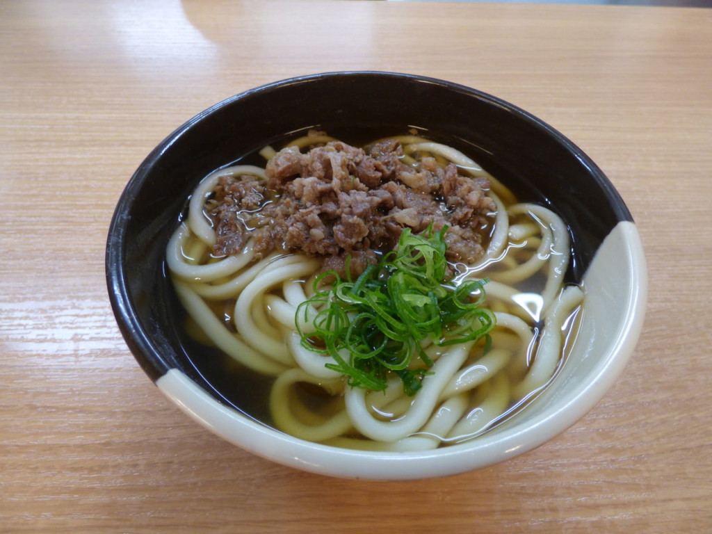 長生園の肉うどんは、牛肉をショウガの風味たっぷりに甘めに炊かれており、そのまま食べても美味しく、うどんと一緒に食べると、より一層美味しくなります。