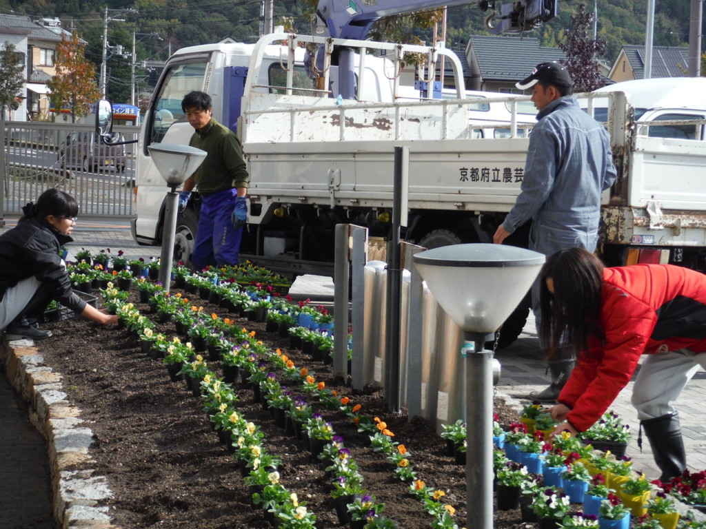 花の植え替えは毎年、毎回、「京都府立農芸高等学校フラワーキャラバン」にお世話になっております。