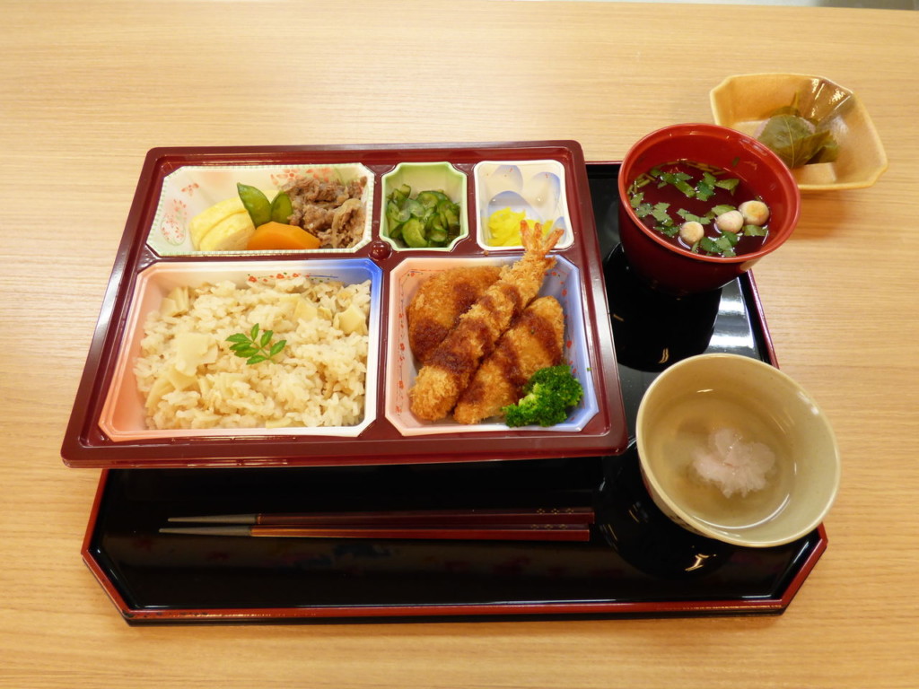 光華苑のお花見弁当です。桜を使い、春らしい献立になりました。