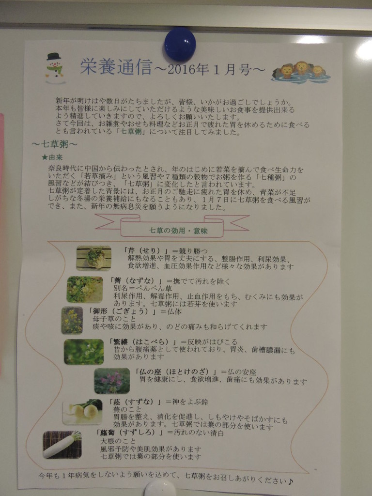 長生園では「七草がゆ」が在園の皆様・職員の少し疲れた身体や心を癒やしてくれました。